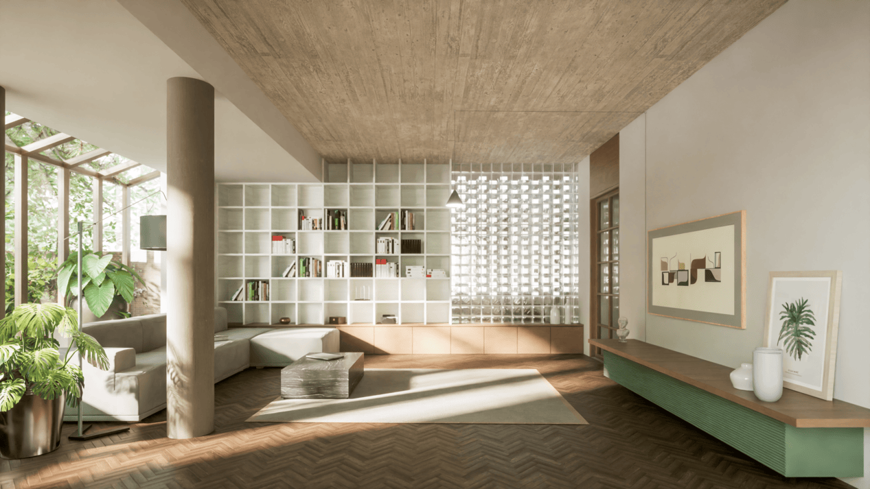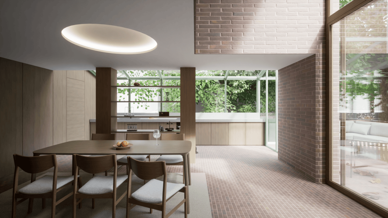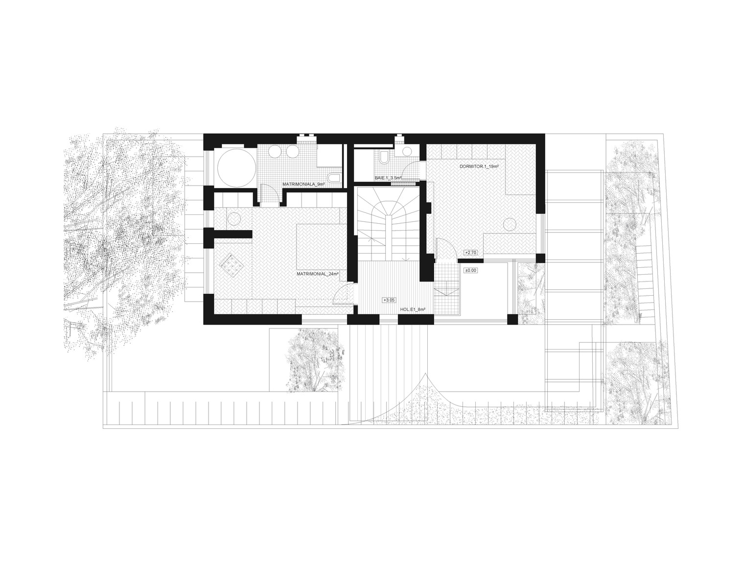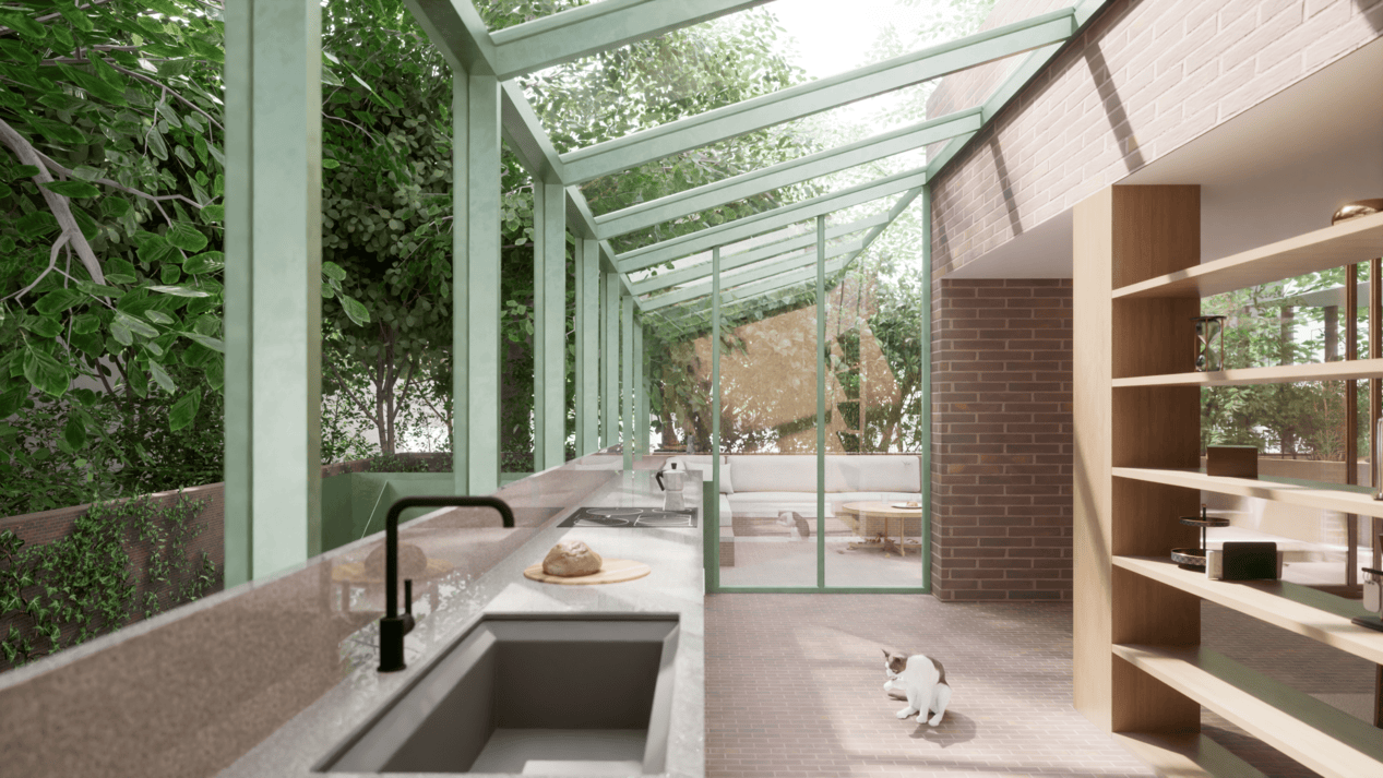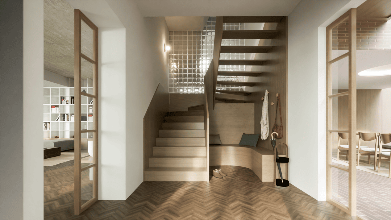 The brief involved working with an existing structure intended as a house from the 1990s—a peculiar building lacking clear architectural intentions, seemingly focused only on maximizing square footage on a narrow plot. Our project reveals its hidden spatial potential: a sunken swimming pool, a kitchen illuminated by a glass ceiling, a series of vertical, double-height spaces that connect various levels, a translucent façade, and a collection of gardens along the periphery of the plot. Together, these elements create an inhabitable, layered façade that enhances the house’s depth and character.