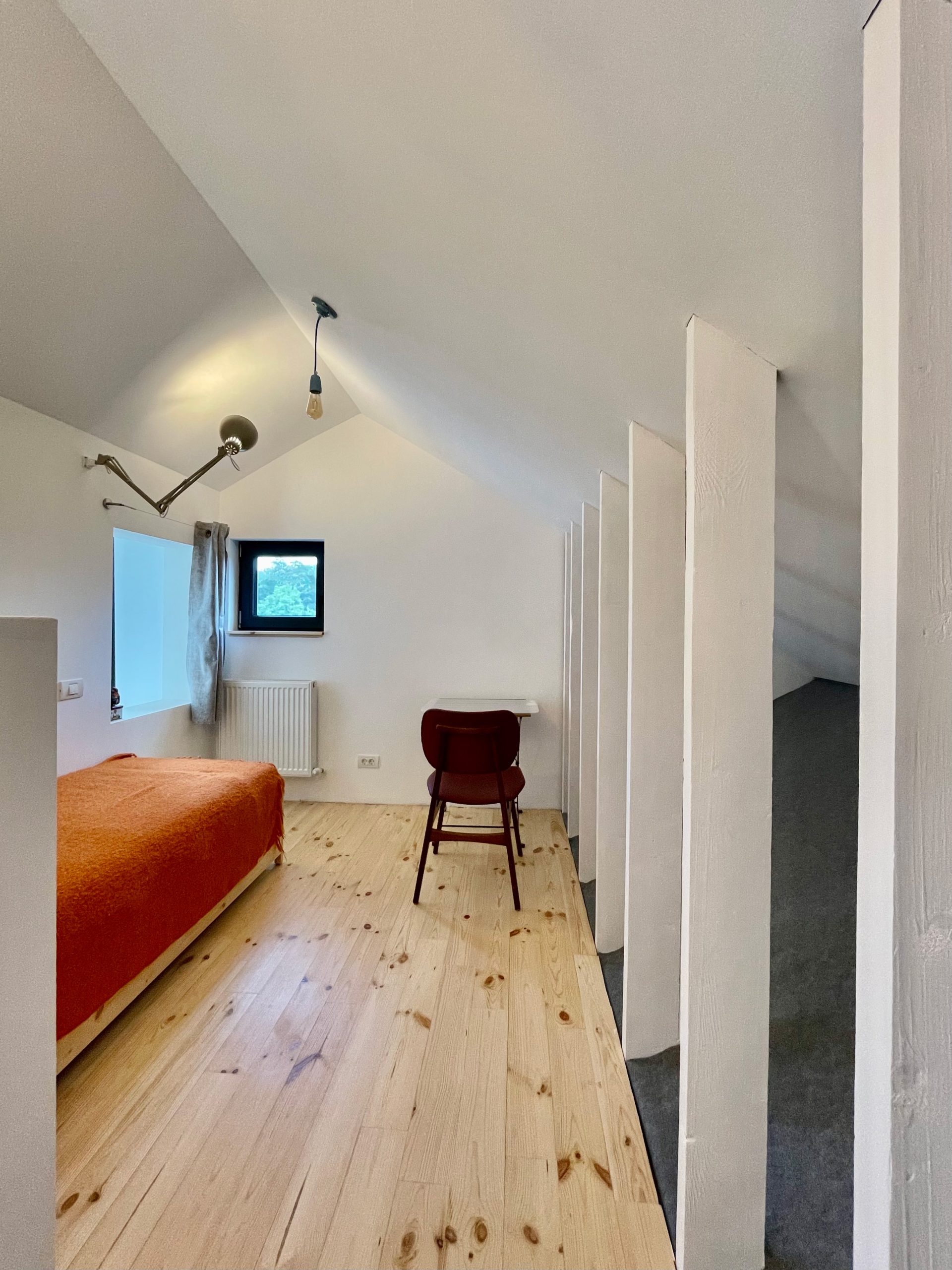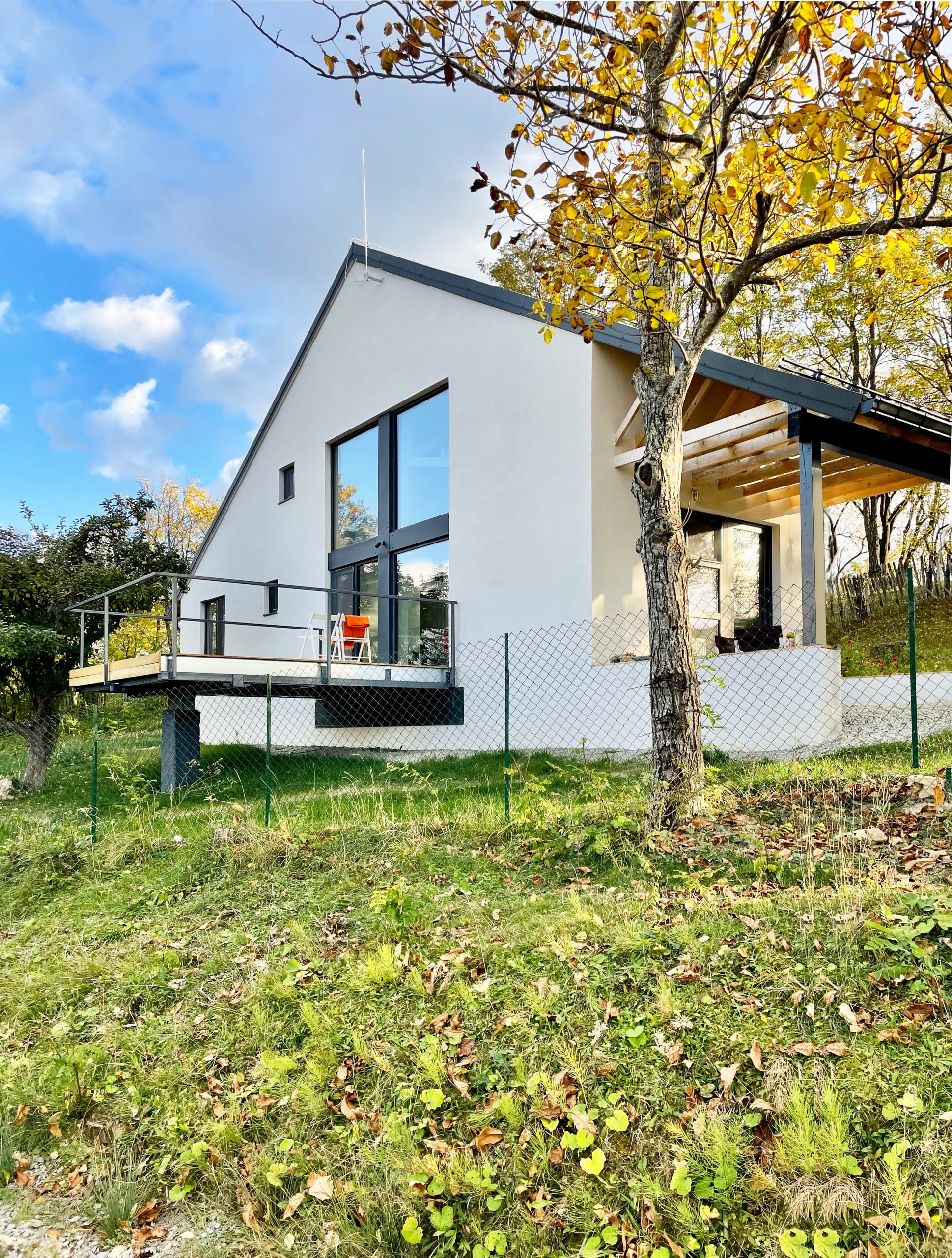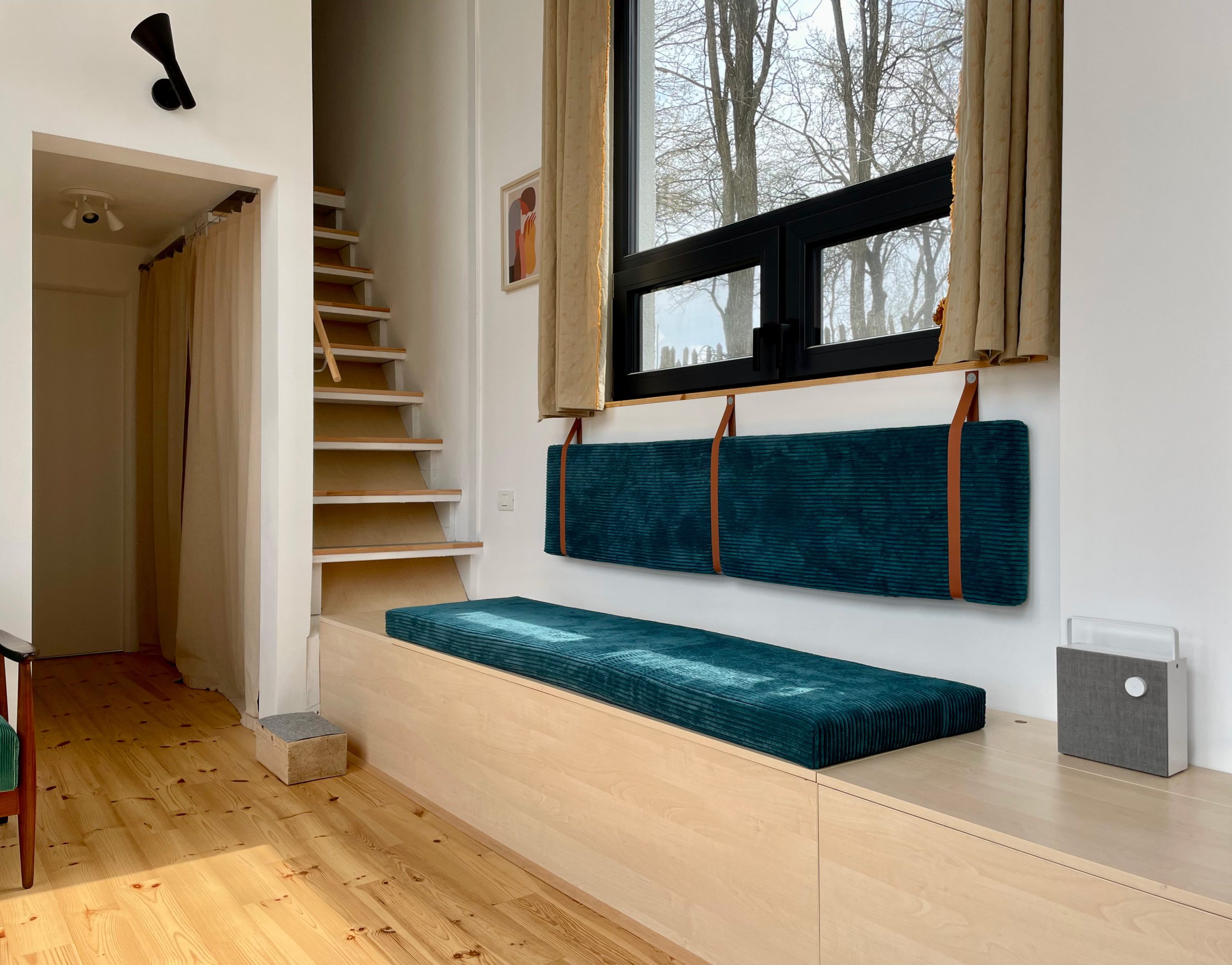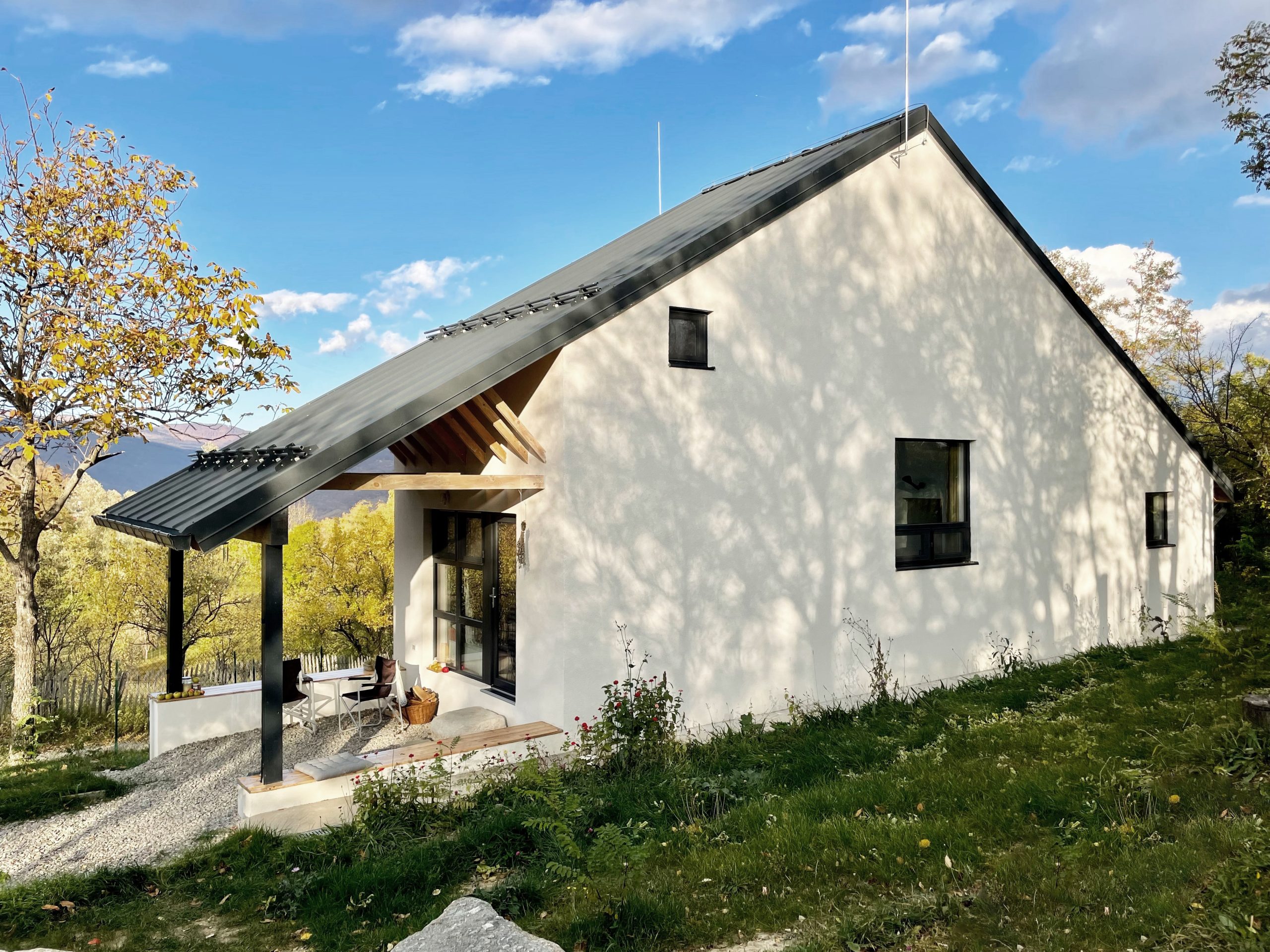 The cabin is a compact mountain retreat, designed with a dynamic, playful approach to scale. Discreet, enclosed spaces gather around a central, double-height chamber that opens broadly to capture sweeping scenic views. The essence of the project is captured in the longitudinal section. Two distinct outdoor areas enhance the experience: a sheltered ground-level space adjoining the kitchen, and a cantilevered terrace accessible from the living room, offering panoramic views of Paltinu Lake, located 5 km away. All rooms, except for the master bedroom and bathroom, are aligned in a sequence and interconnected through windows and openings that maintain a visual flow, creating a sense of interior facades throughout.